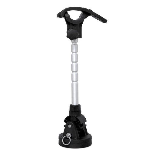 Reduces bounce on bow-mount trolling motors. Equipped with a low profile mounting base that allows stabilizer to be easily removed. Pivoting arm ca...